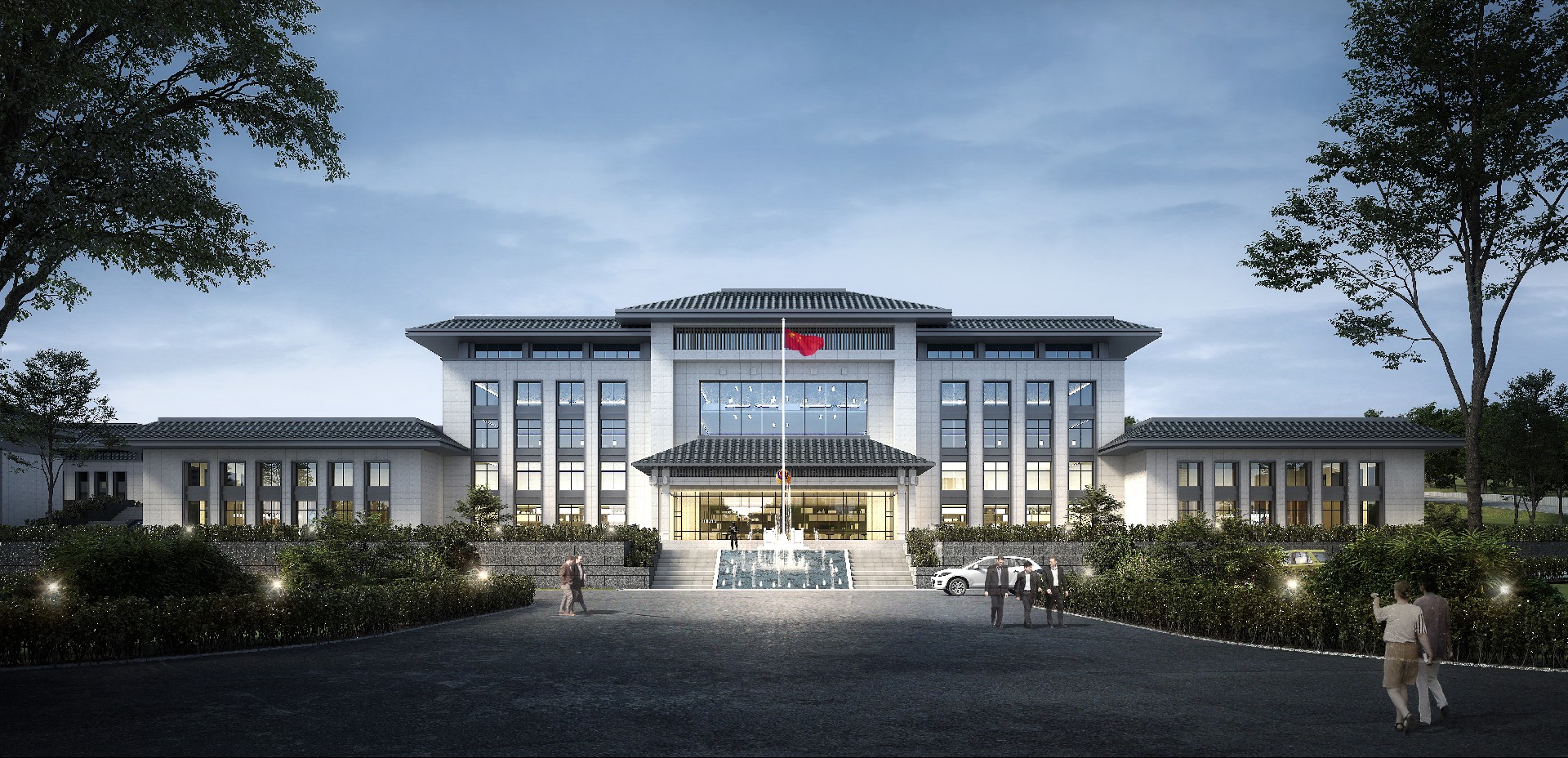 山東出入境邊防檢查總站輪訓(xùn)大隊(duì)(南山)營(yíng)區(qū)改造設(shè)計(jì)項(xiàng)目,總占地面職約 200 畝,對(duì)營(yíng)區(qū)內(nèi)主要建筑及附屬設(shè)施進(jìn)行功能改造,改造面積約總建筑面積約 1.6萬(wàn)平方米。"一人之形象,國(guó)家之縮影;一人之舉止,民族之風(fēng)貌。邊防檢查人員的形象和服務(wù)至關(guān)重大。本項(xiàng)目整體規(guī)劃格局莊重大氣,建筑效果協(xié)調(diào)統(tǒng)一,室內(nèi)裝飾溫馨舒適,充分考慮該地塊地形現(xiàn)狀,結(jié)合現(xiàn)有道路情況,通過(guò)設(shè)置多個(gè)臺(tái)地解決場(chǎng)地內(nèi)高差及功能分區(qū)的需求。本設(shè)計(jì)全面展現(xiàn)項(xiàng)目生態(tài)性、智能化。信息化、安全性等特色,倡導(dǎo)綠色健康、可持續(xù)發(fā)展的建筑模式。建筑整體設(shè)計(jì)大方、莊重.典雅,在設(shè)計(jì)細(xì)節(jié)上體現(xiàn)項(xiàng)目?jī)?yōu)良品質(zhì)。